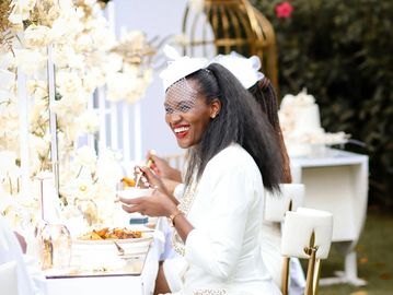 Includes sweetheart's table & canopy, guest tables & canopies, lounge area, photo backdrop with props, floral dΓ©cor, & non-alcoholic champagne
